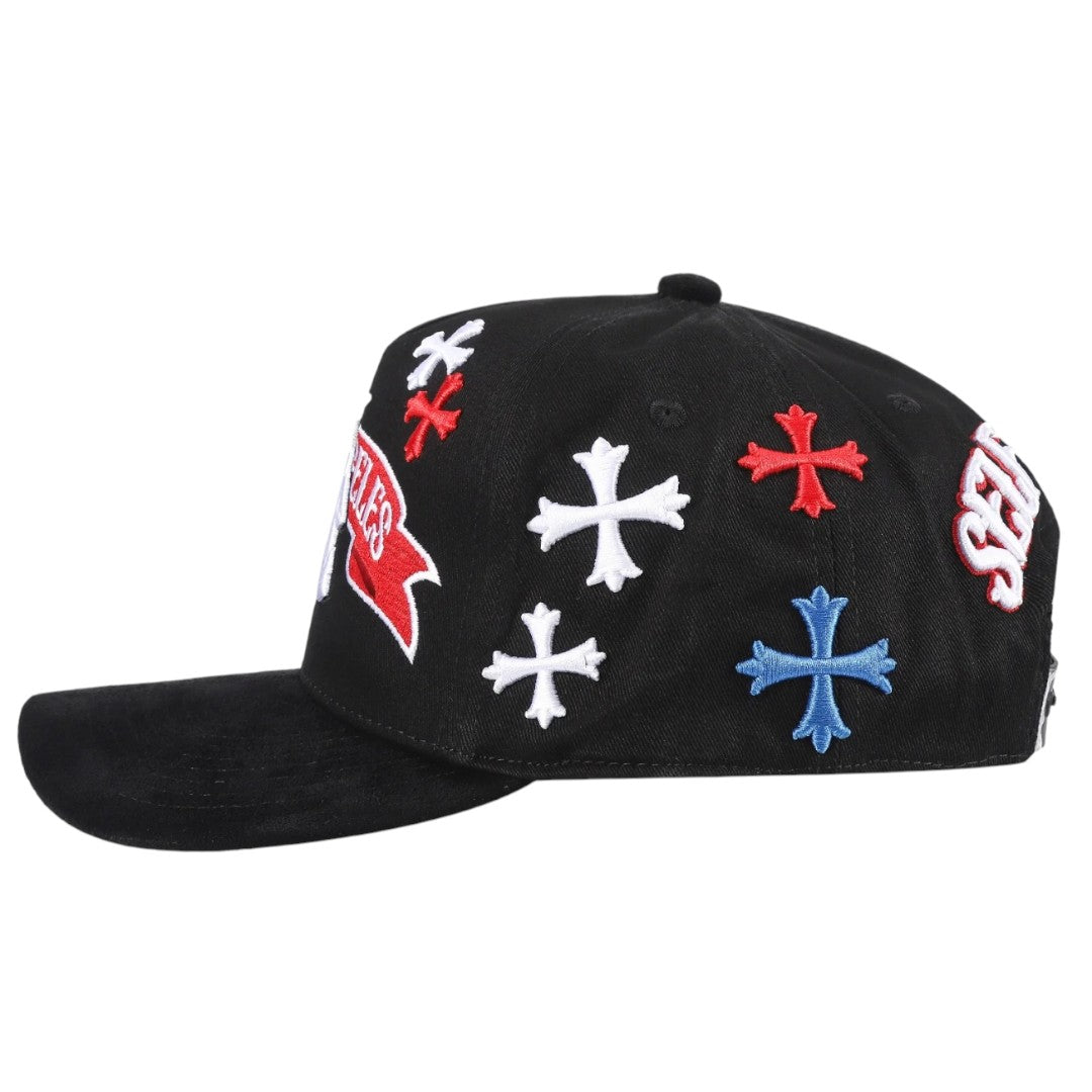 Eleva tu estilo con nuestra gorra “LA Cross Edition”, una pieza premium diseñada para destacar en cualquier outfit. Su bordado 3D de alta definición combina el icónico estilo angelino con detalles modernos y llamativos, acompañado de múltiples cruces que le dan una esencia urbana y única.