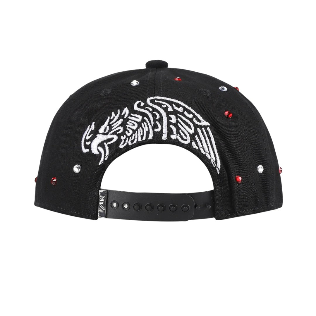 En la parte posterior, una águila blanca bordada simboliza fuerza, libertad y raíces.